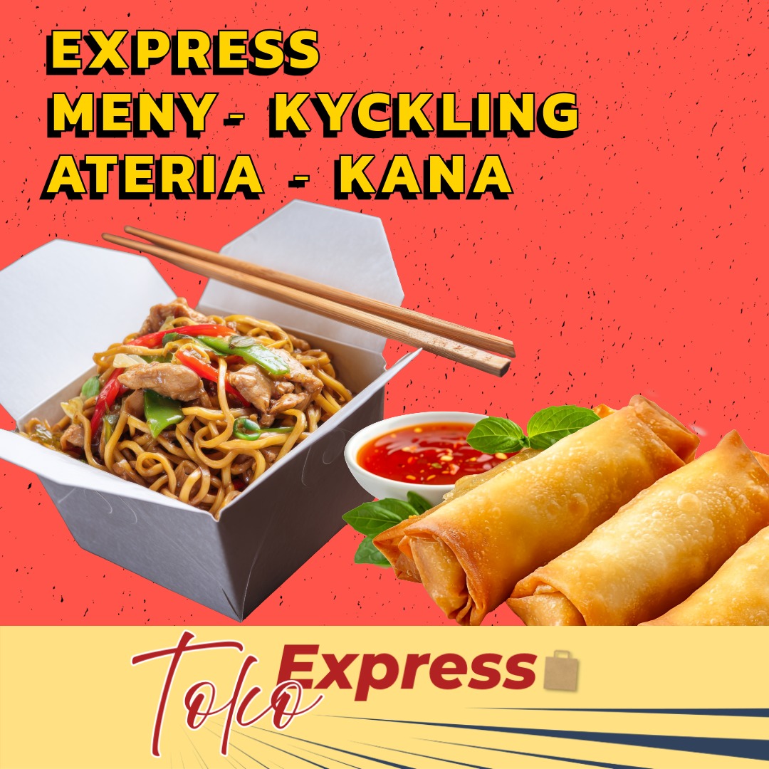 Stir-fried noodles with chicken, spring rolls and sweet chili dip. Fast, tasty and ready for takeaway.